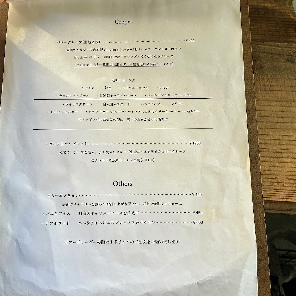 Welcome to cafe L'Arche, an enchanting café nestled on the fourth floor of Nakahara Mansion in Kobe, Japan. This cozy spot offers a delightful selection of crepes that are both innovative and meticulously crafted. Highlights from the menu include the seasonal Nut Cream and Baked Apple Crepe priced at 1,500 yen, and the classic Butter Crepe at 600 yen, which emerges crisp on the outside while remaining soft and chewy within.